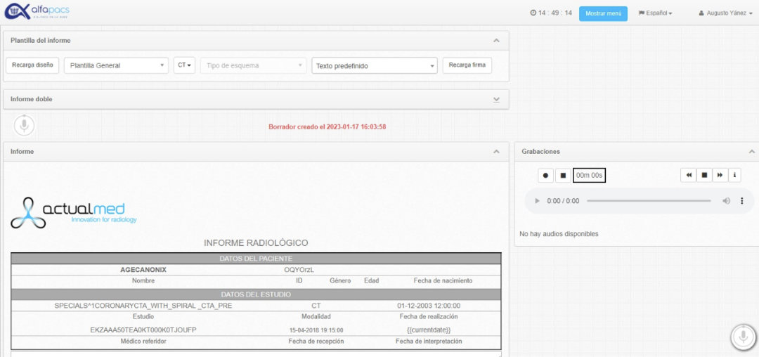 Con ActualPacs, los profesionales de diagnóstico podrán informar directamente dentro de la plataforma haciendo uso del MÓDULO DE INFORMADO, en donde tendrán acceso a plantillas preestablecidas, así como de personalizar totalmente la plantilla de acuerdo a las necesidades del Centro Médico.